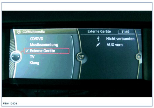 NOTE: Only perform USB test with the USB cable provided in the scope of delivery of the IMIB. Always perform USB tests directly at the USB connection of the vehicle. Do not use extension cables, USB hubs etc.