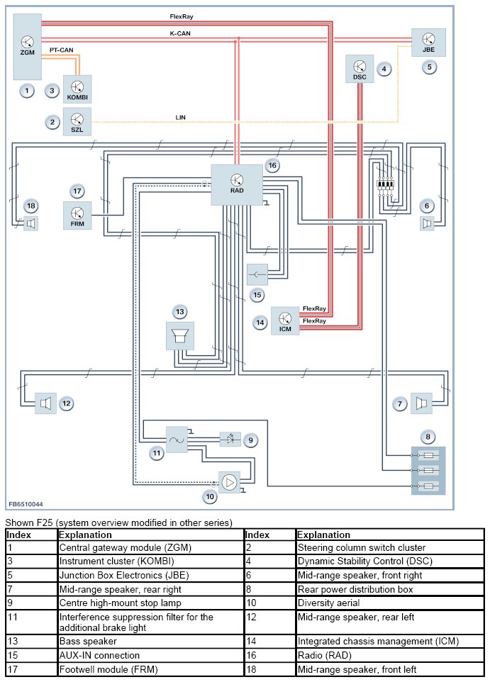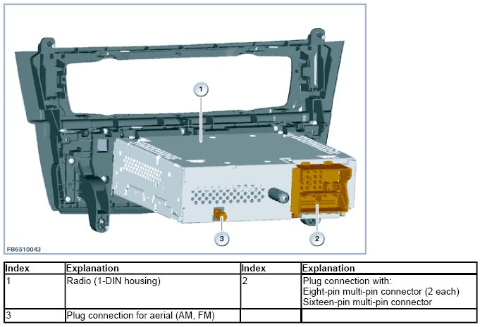 This radio is not equipped with a MOST interface. The radio has a 2-row display on its front. An external Central Information Display (CID) and a controller (CON) are not installed on this headunit. Operation is only by means of the integrated buttons and the 2 rotary push-buttons.