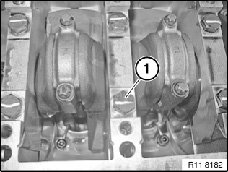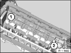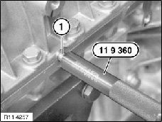 Drive both injector nozzles (1) on left and right with special tool 11 9 360 into crankcase up to stop.