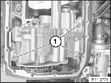 Tighten screw (1) for oil pump triangular drive with special tool 11 8 640.