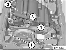 Prepare liquid sealing compound (1) in special tool 11 4 370.
