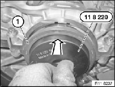 Position radial shaft seal (1) with special tool 11 8 220 on the crankshaft.