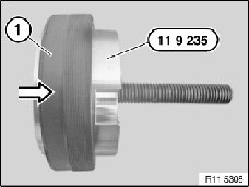 Screw special tool 11 9 235 with special tool 11 9 234 on crankshaft.