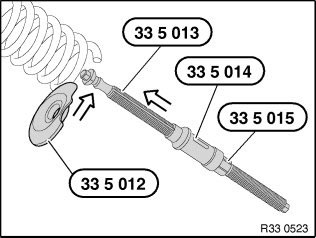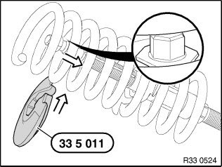 Centre special tools 33 5 011, 33 5 012, 33 5 013, 33 5 014, 33 5 015 to achieve the greatest possible contact surface with the coil spring.