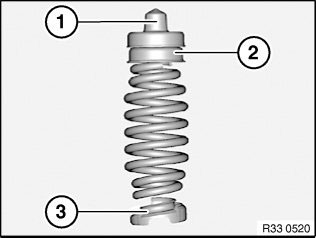 Bottom end of coil spring (1) must be flush with opening of spring cup 33 5 012 (see dotted-dashed line)!