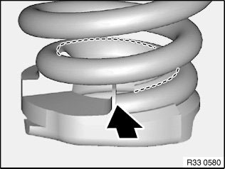 Insert top spring cup 33 5 011 sideways into coil spring and turn to the uppermost winding.