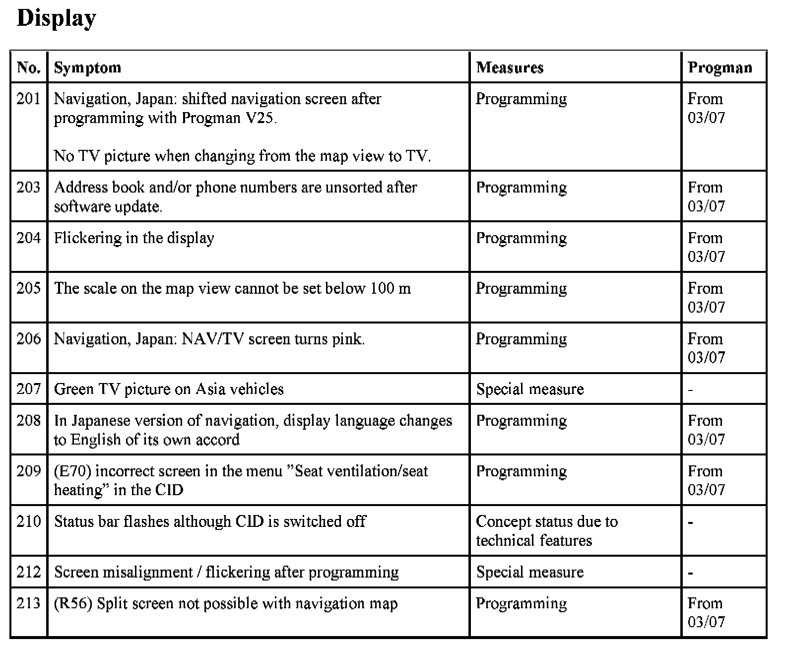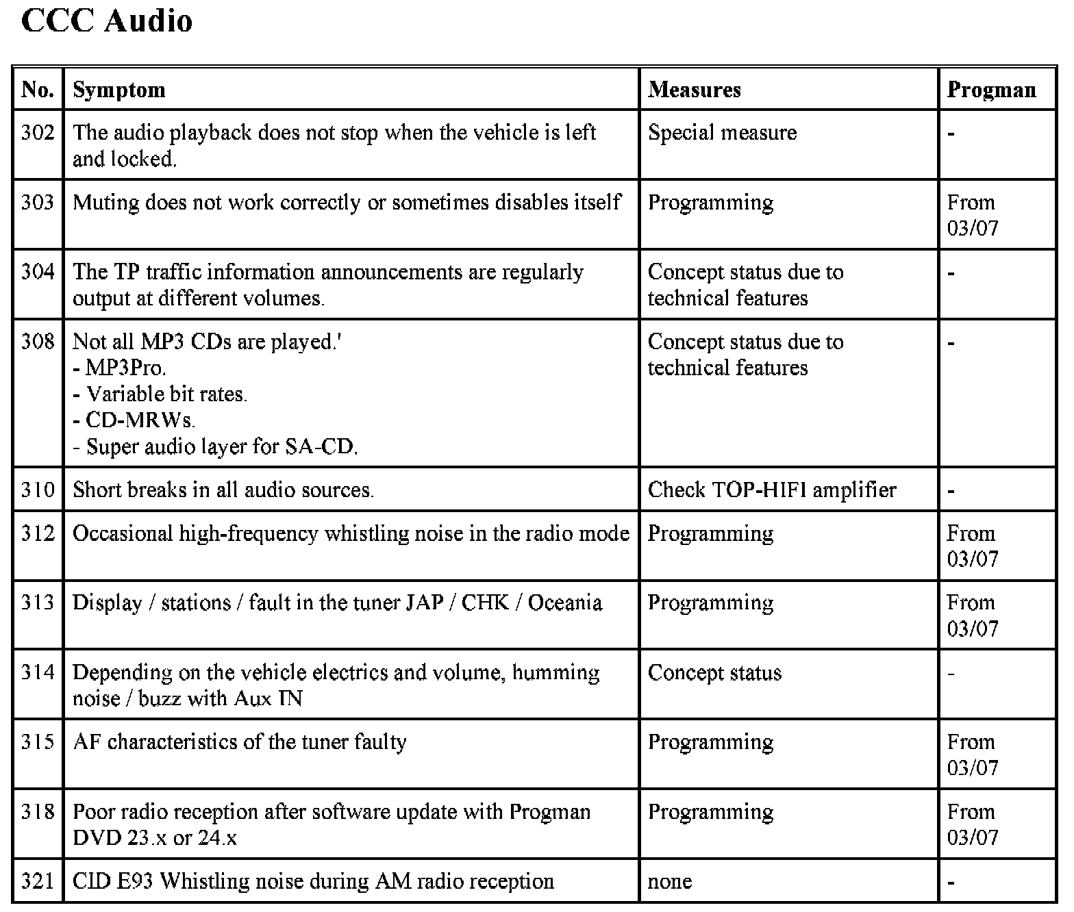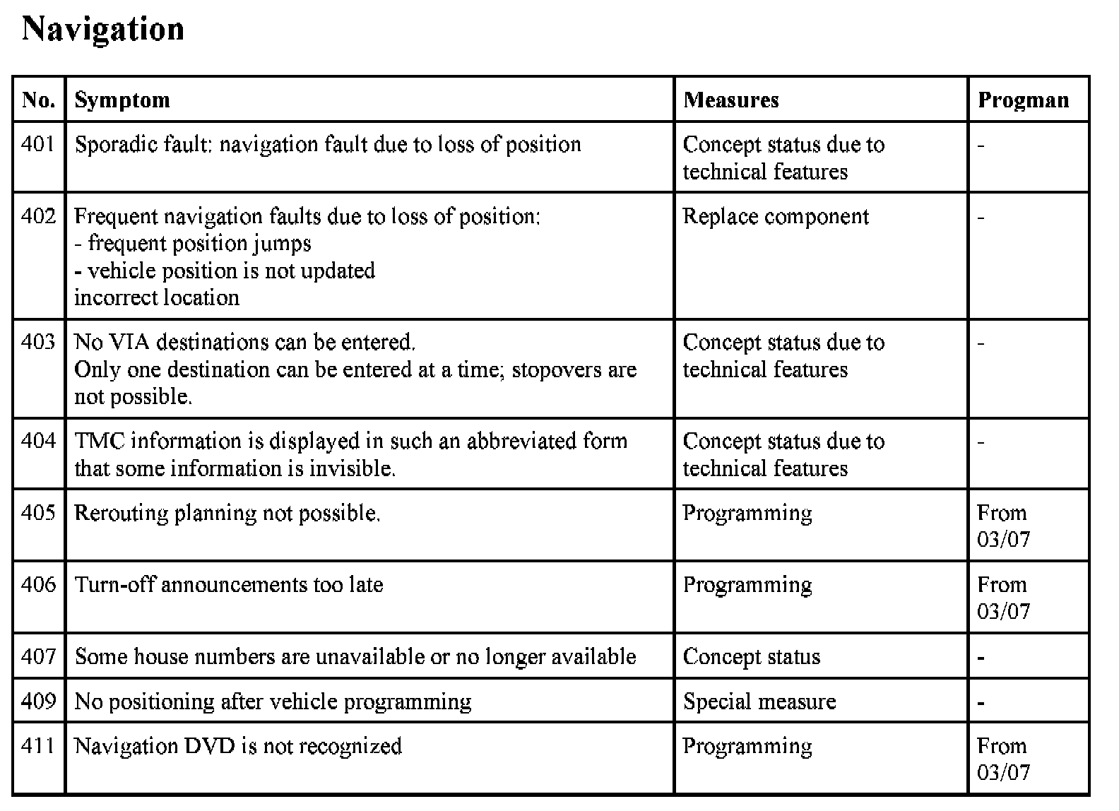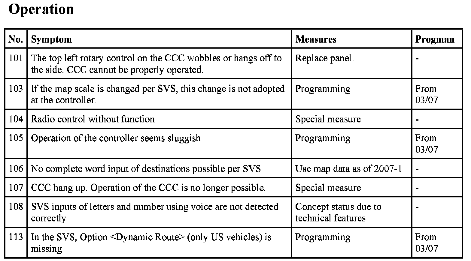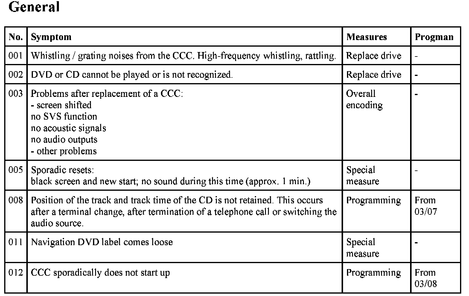 The navigation system Professional (CCC) is a complex control module with a large number of possible fault profiles. The following list shows known symptoms in the functional area CCC audio and navigation. Fault profiles from the functional areas of telephone and Telematic services as well as integrated heating / air conditioner control are not covered in this test module.