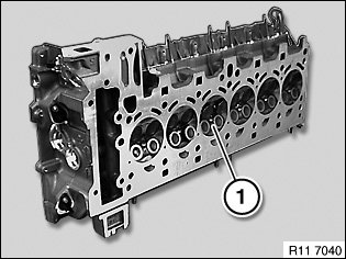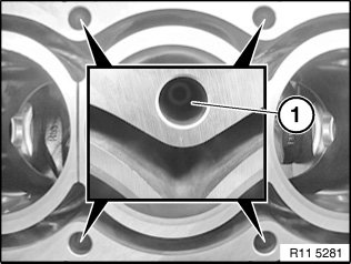 There must be no fluids or contaminants in any of the threaded holes (1) for the cylinder head bolt connections.