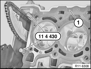 Release cylinder head bolts (1) M9 with special tool 11 4 420.