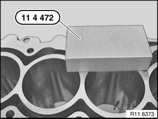 Remove fine residues on sealing surfaces with special tool 11 4 472 from cylinder head and crankcase.