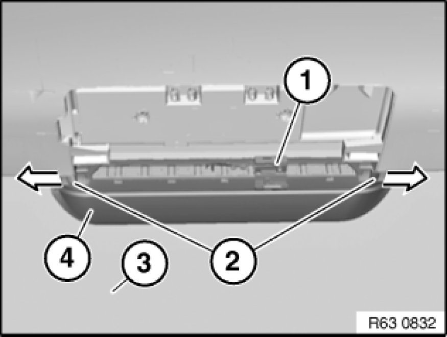 Retaining hooks (3) and guides (2) of auxiliary brake light cover (1) must not be damaged.