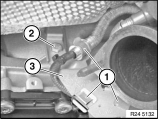 Release nut (1) and holder from transmission oil lines on oil sump.