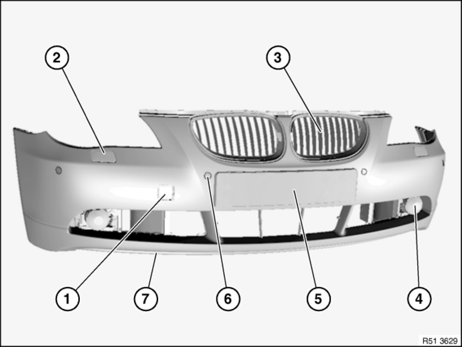 - Remove front bumper trim 51 11 156 Removing and Installing Front Bumper Trim