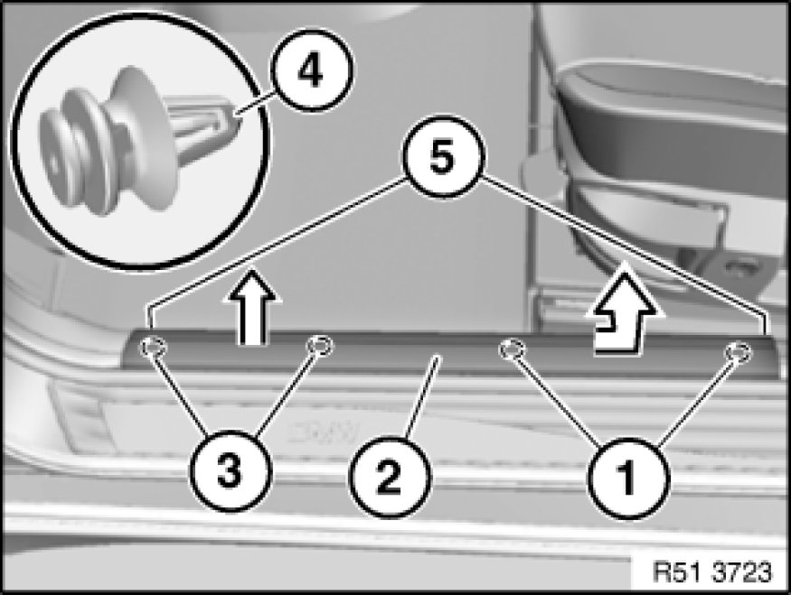 51 47 000 Removing and Installing/Replacing Front (Inside) Left or Right Entrance Cover Strip