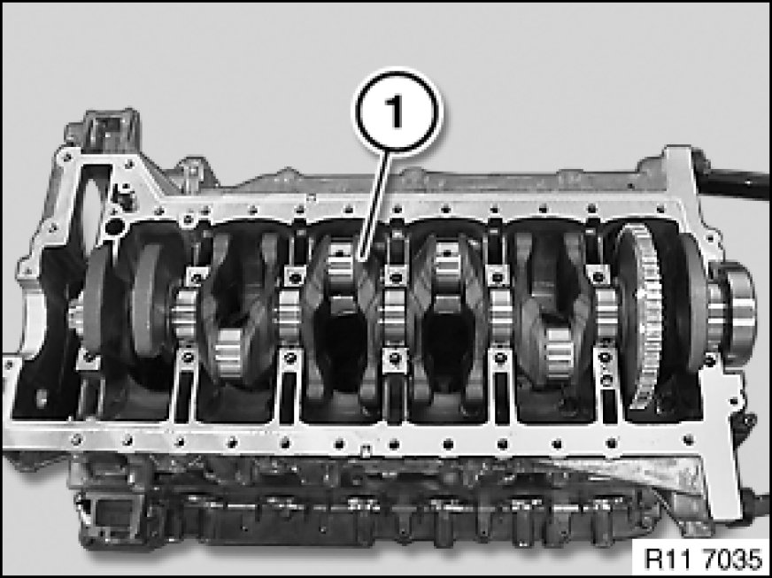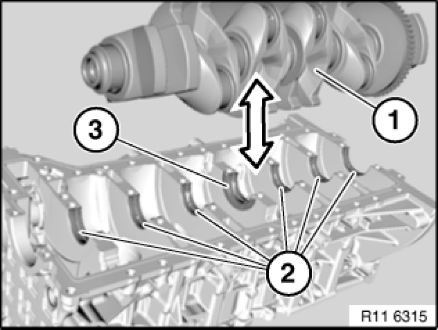 Remove bearing shells Service and Repair(2) and guide bearing shell (3), replace if necessary.