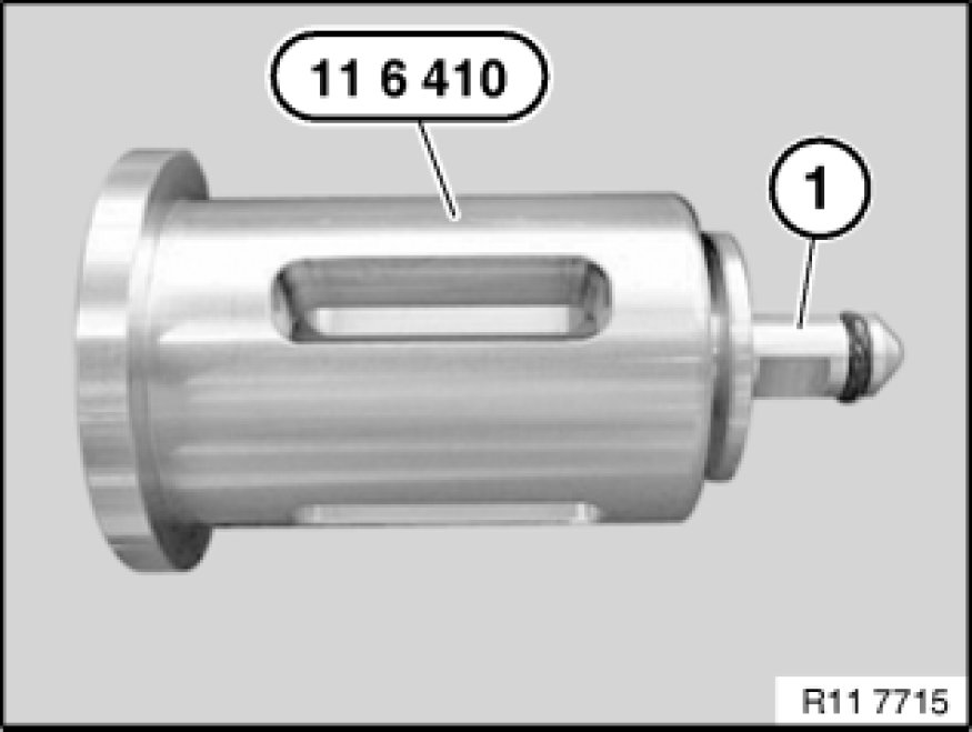 Release screw piece (1) on special tool 11 6 410 11 6 410 Adapter.