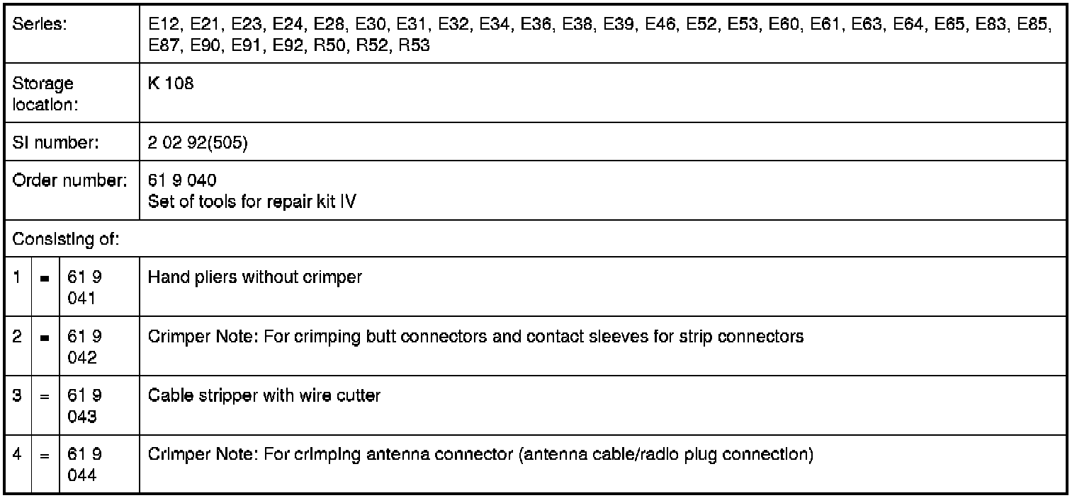 61 9 040 Set of Tools for Repair Kit IV