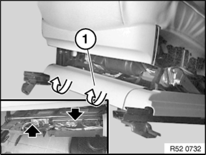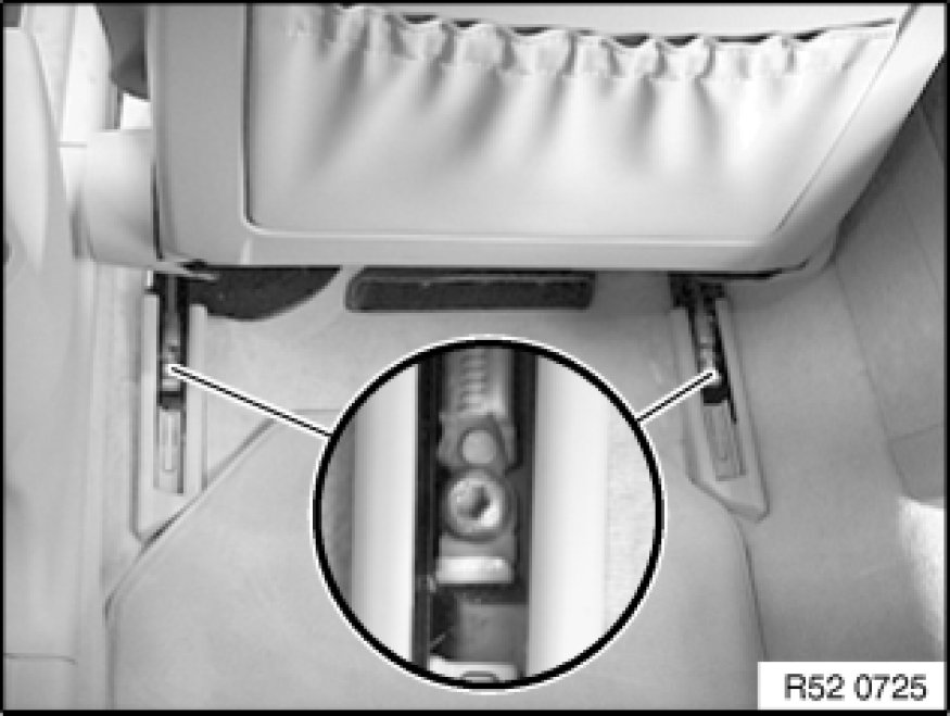 Press rocker switch (1) on front left seat rail cover and unlock.