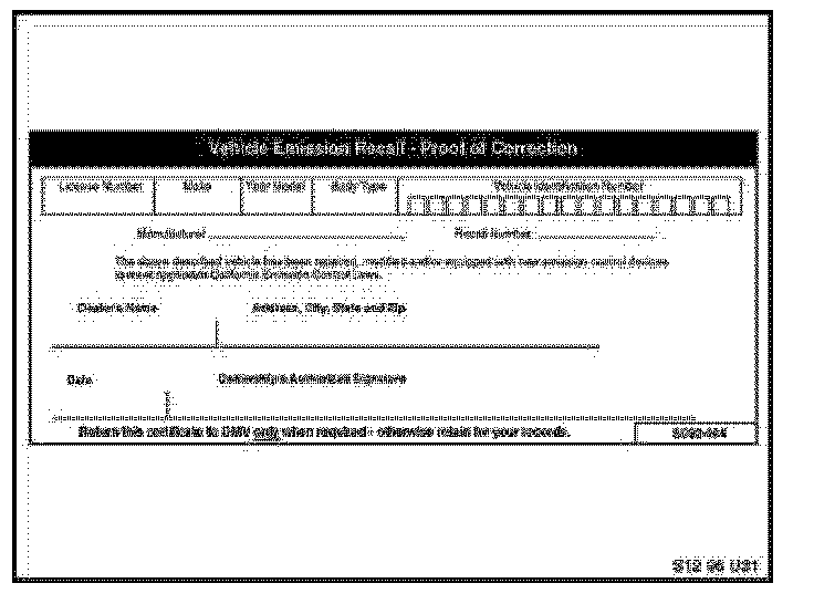 For California centers only: It is required by the California Code of Regulations that an executed orange "Vehicle Emission Recall - Proof of Correction" certificate (SD92-084, see illustration) be provided to each customer (for vehicles registered in the state of California), once the Recall on his or her vehicle has been completed.