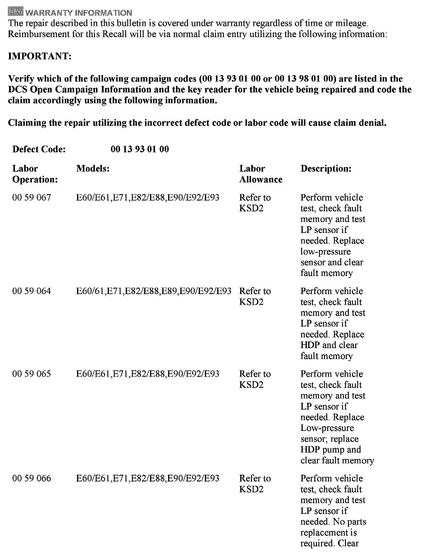 This Emissions Recall Campaign involves E60, E61, E71, E82, E88, E89, E90, E92, and E93 vehicles with N54 engines which were produced from 05/26/2006 through 12/21/2009.