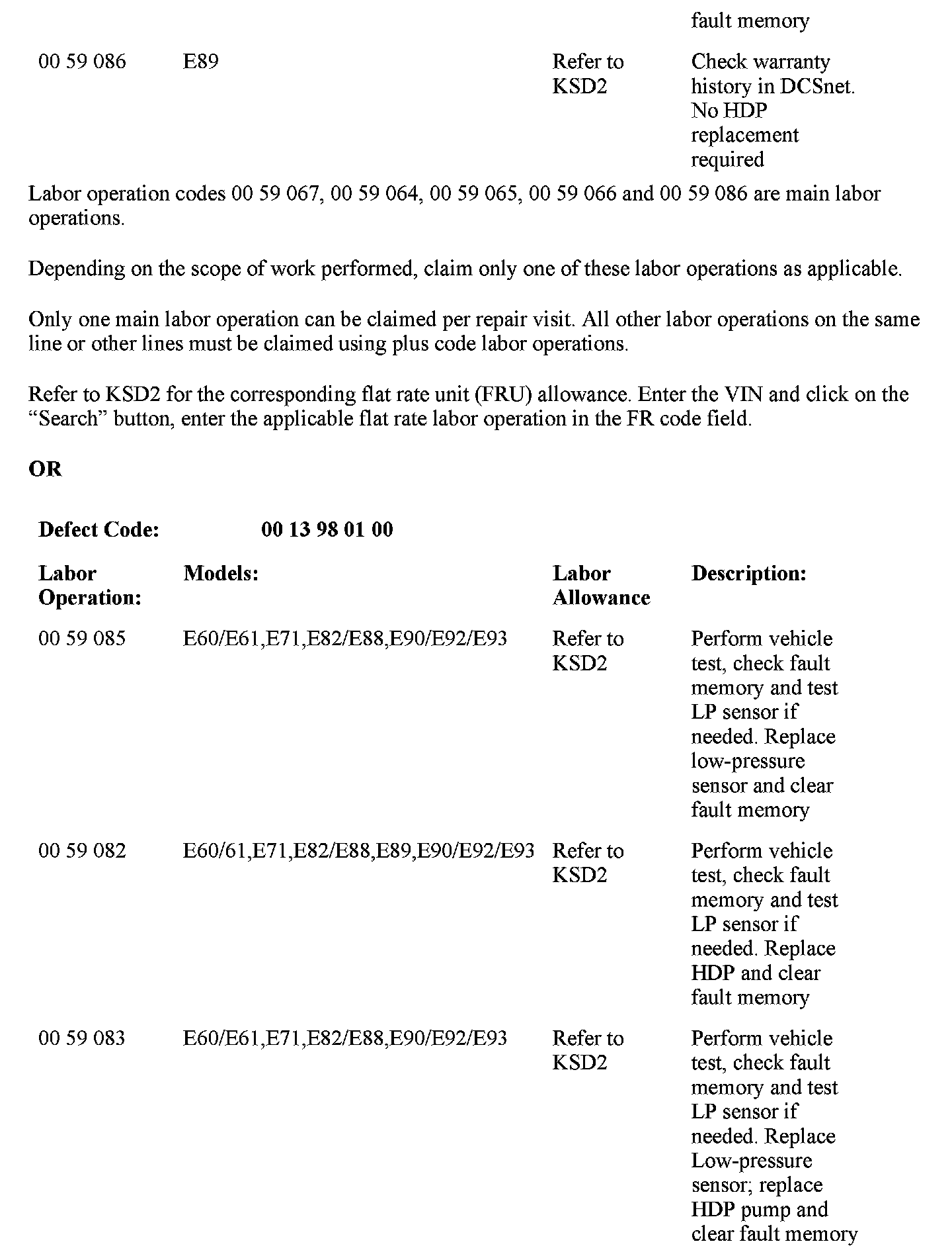 E89 (Z4) vehicles are not equipped with the low-pressure fuel sensor. A fault memory/low-pressure sensor check should not be performed on E89 vehicles.