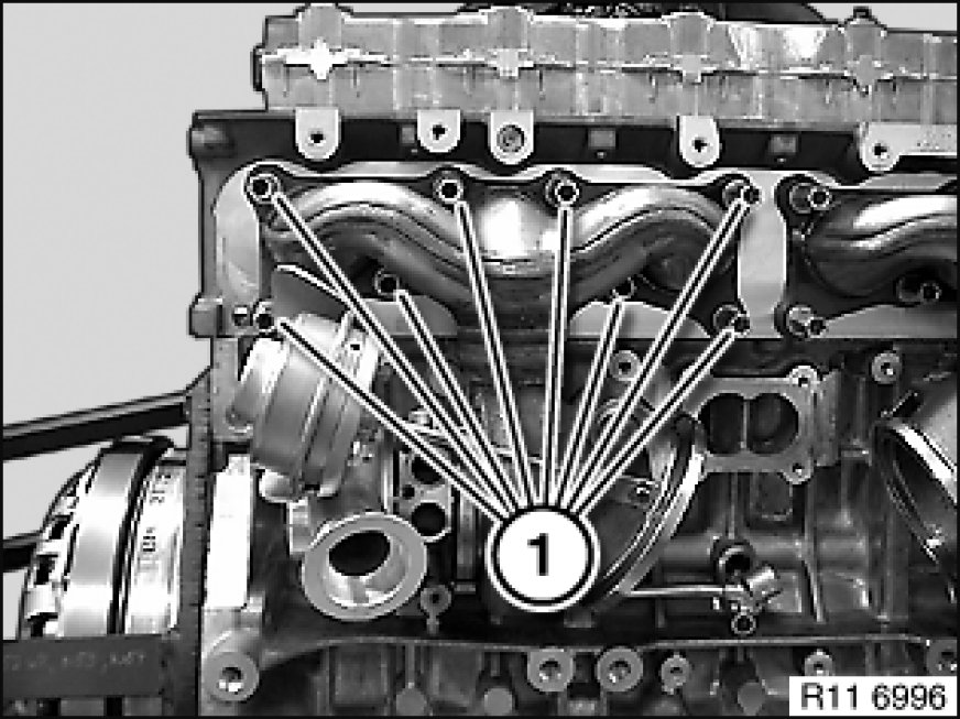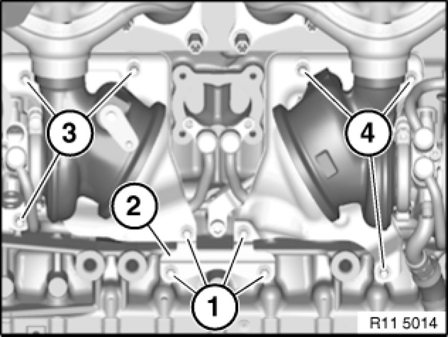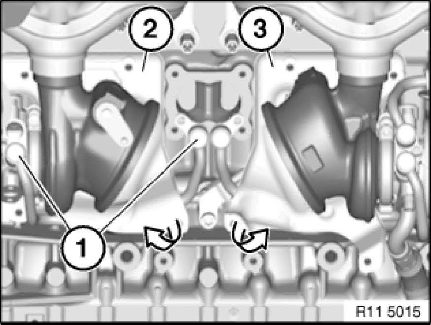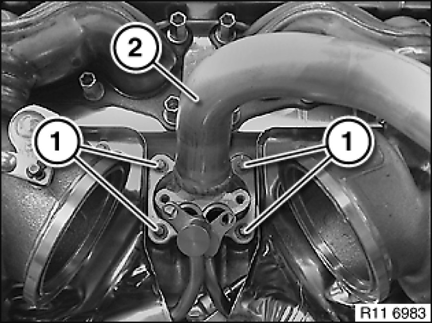 11 65 024 - Removing and installing/replacing exhaust-gas turbocharger for cylinders 4-6 (N54)
