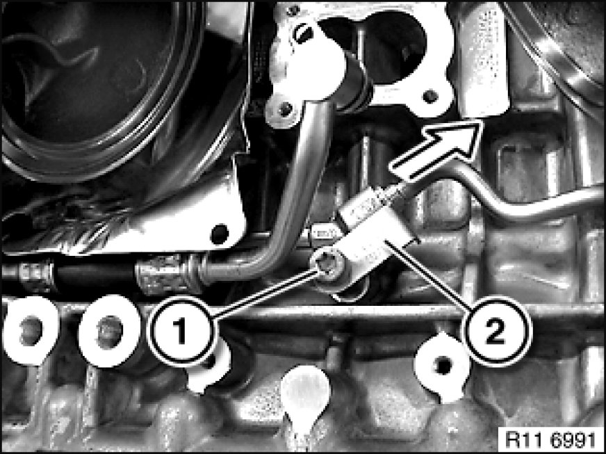 Release coolant return pipe (2) if necessary with suitable pliers and remove.
