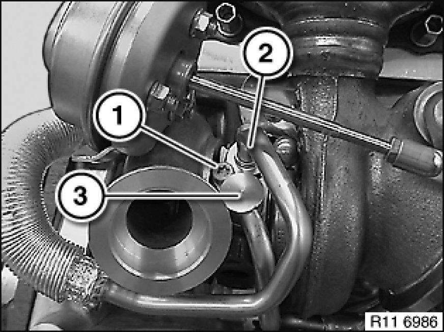 If necessary, release oil feed line (3) with suitable pliers at connection and remove.
