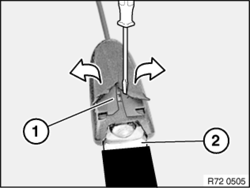 Using screwdriver, press pin (1) into recess and release anchor fitting (2).