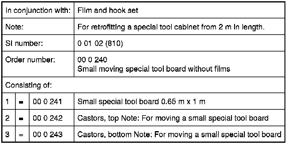 00 0 240 Small moving special tool board without films