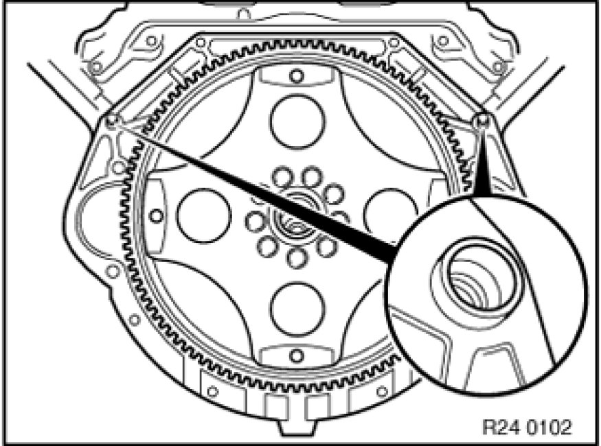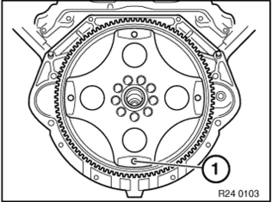 Bore (1) in driving disc must be accessible from opening on engine oil pan.