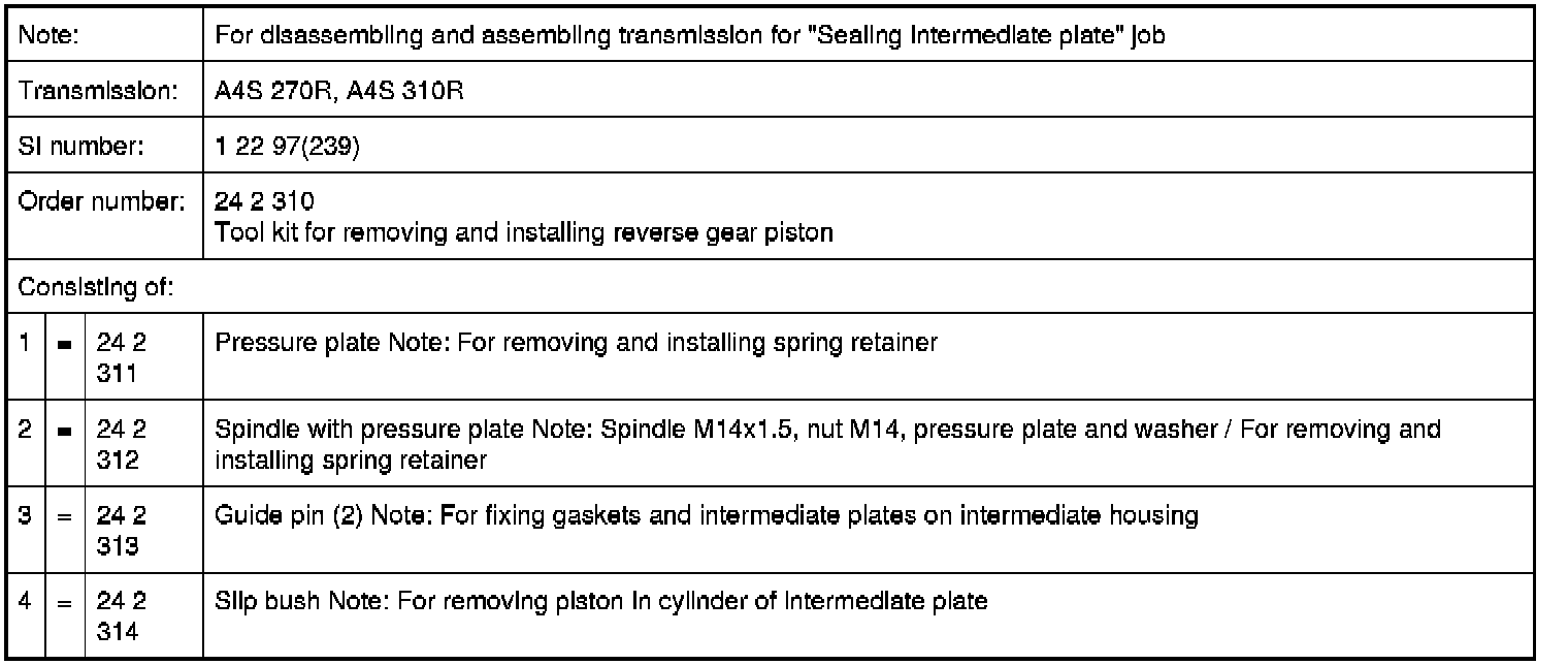 24 2 310 Tool Kit for Removing and Installing Reverse Gear Piston