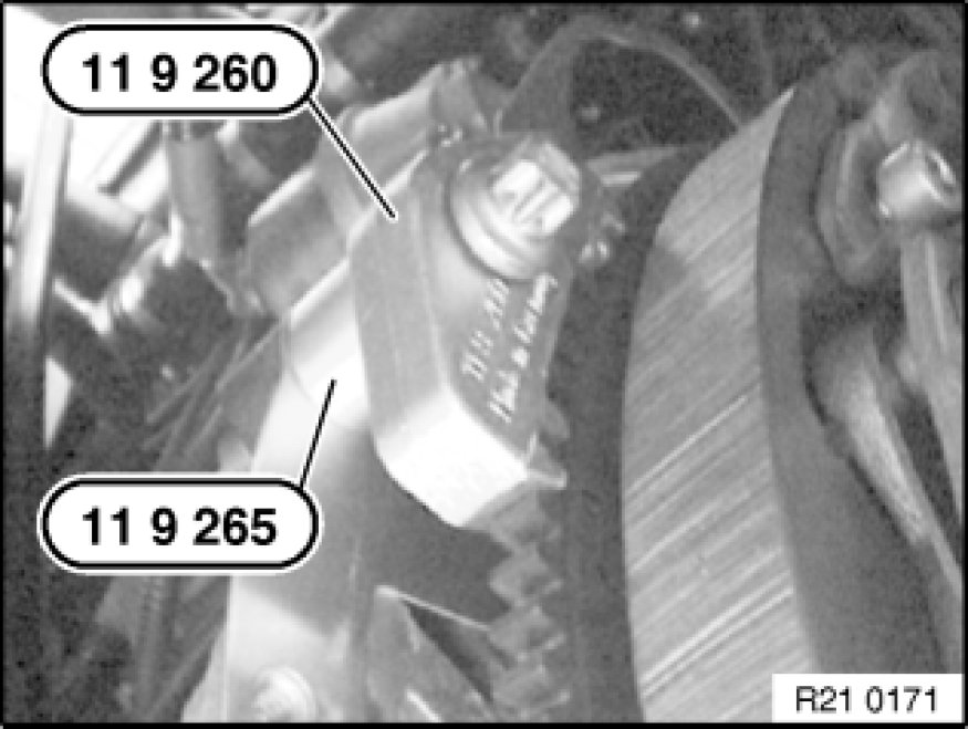 Insert special tool 21 2 170 21 2 170 Tensioning Tool only in area of bores for dowel pins.