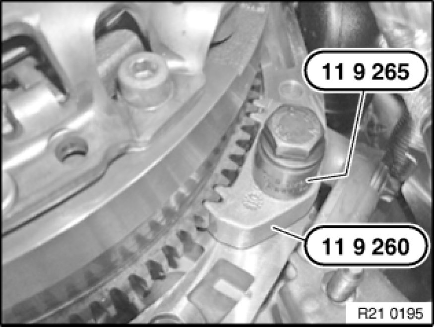 Block flywheel with special tools 11 9 260 11 9 260 Counter Support with Screw Connection and 11 9 265 11 9 260 Counter Support with Screw Connection.