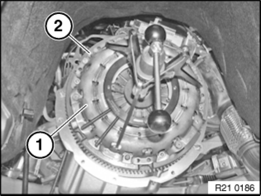 Release spindle (1) until load is fully removed from diaphragm spring (2) Remove special tools 21 2 170 21 2 170 Tensioning Tool and 21 2 180 21 2 180 Locating Ring.