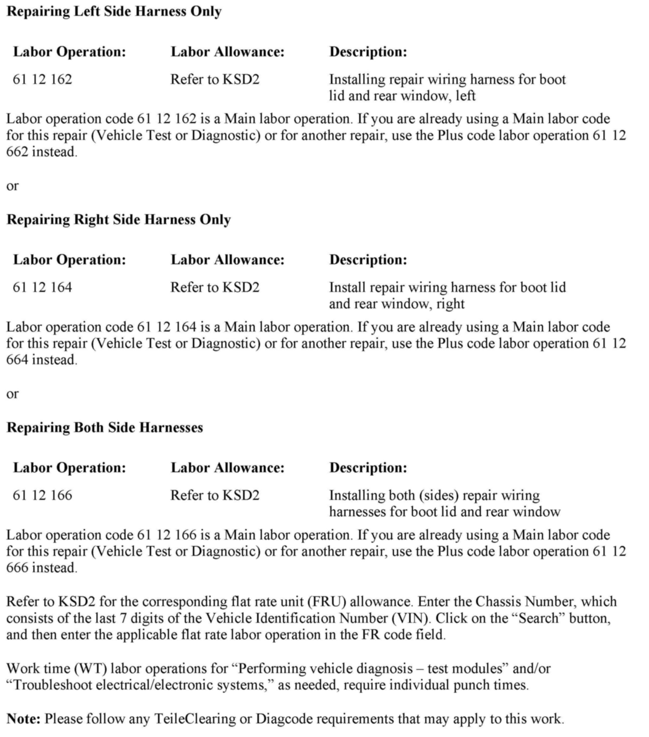 ^ "61 12 164 Installing the repair harness of the tailgate and rear window on the right"