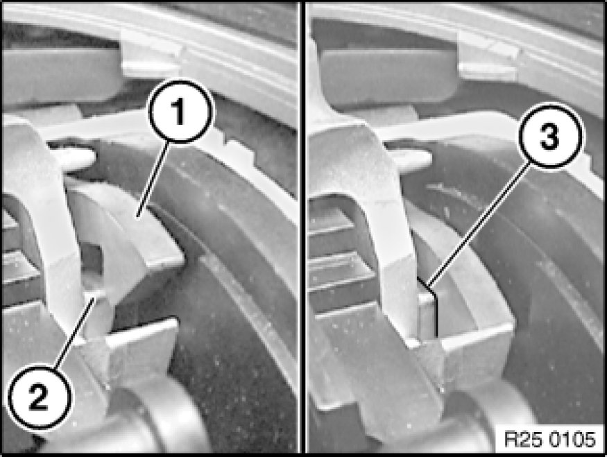 - Interlock locking pawl (1) must rest (3) on contact face in shift tower (2).