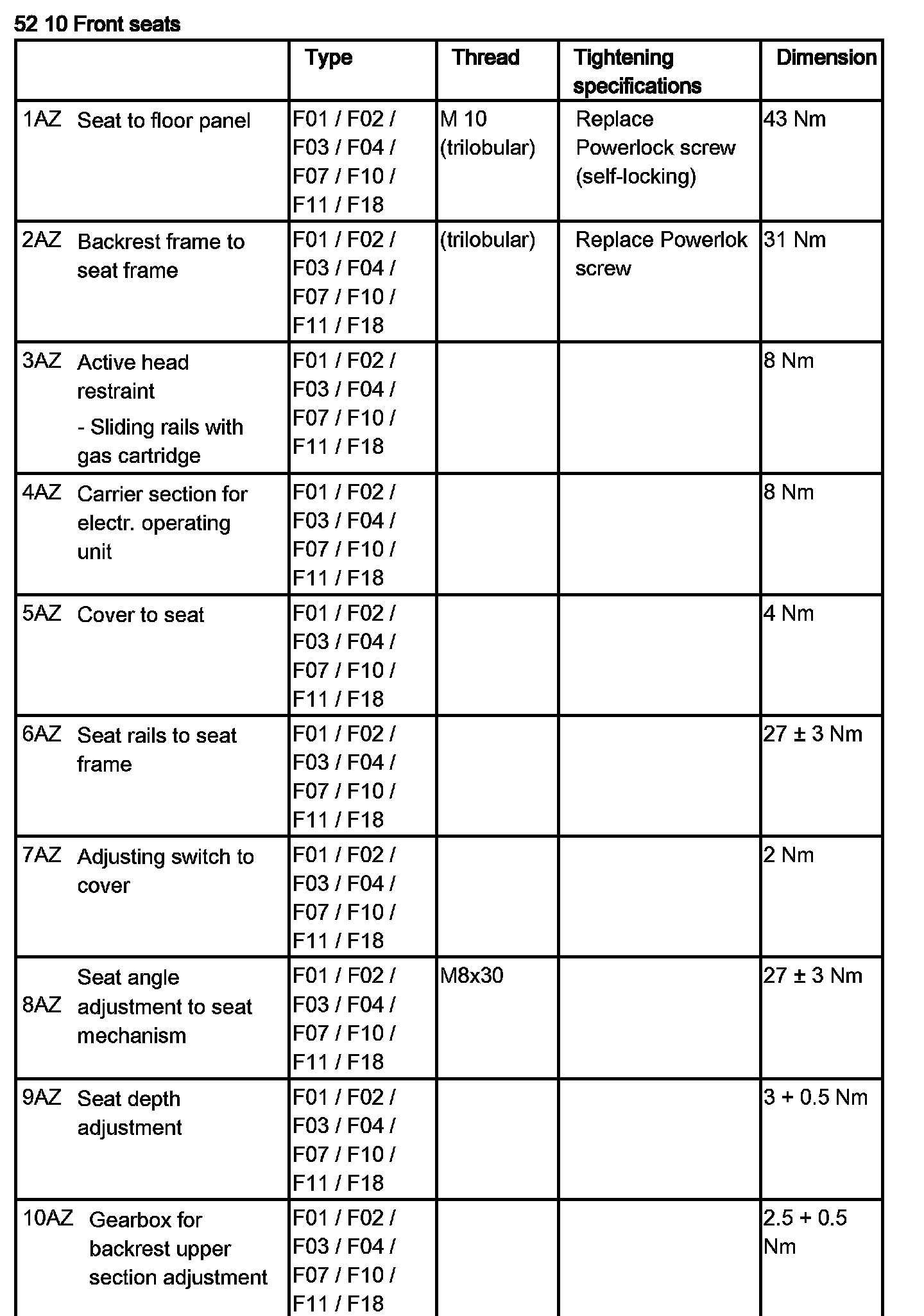 52 17 022 Removing and Installing/Replacing Adjusting Unit For Thigh Support on Front Passenger Seat