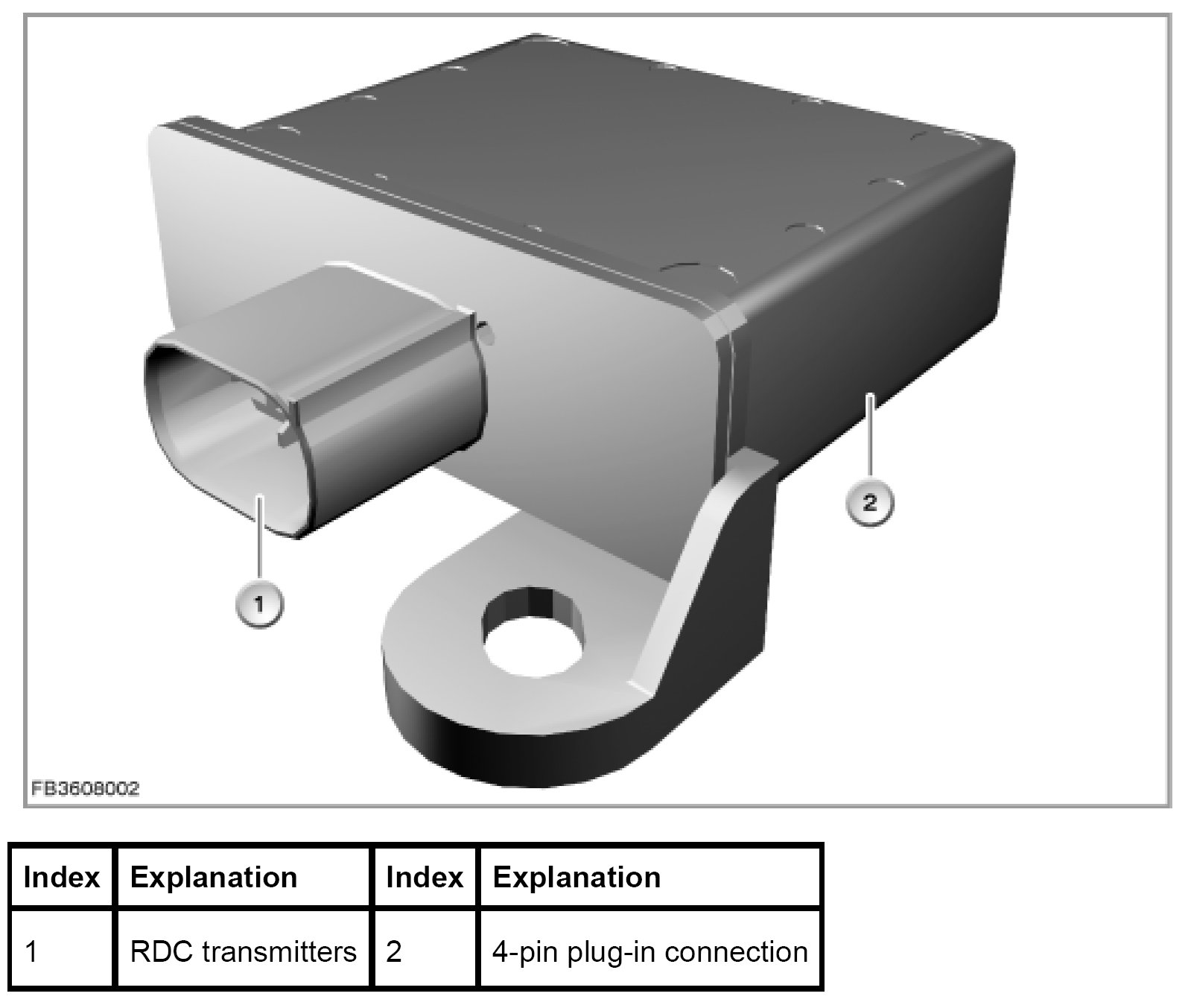 In total, 4 RDC transmitters are installed (front left, front right, rear left and rear right). The 4 RDC transmitters are identical components.