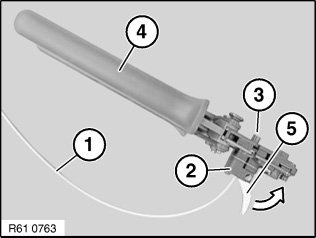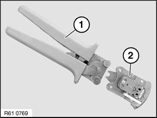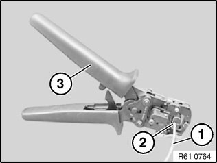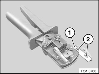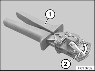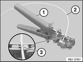 To cut off, strip insulation and cut optical fibres to length, use pliers 61 4 321 (1) in conjunction with crimping head 61 4 322 (2) 61 4 320 from crimping set.