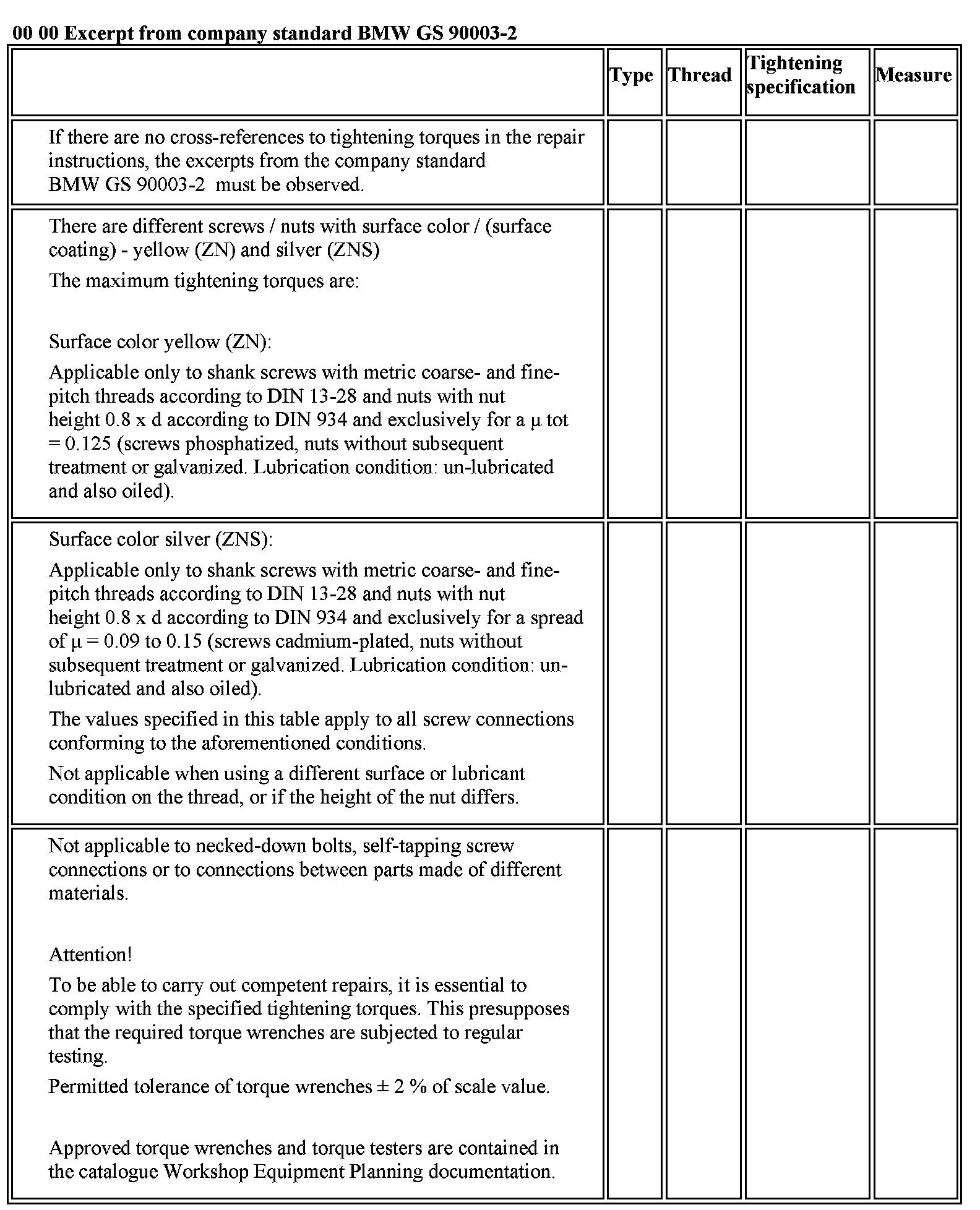 Excerpt from Company Standard BMW GS 90003-2