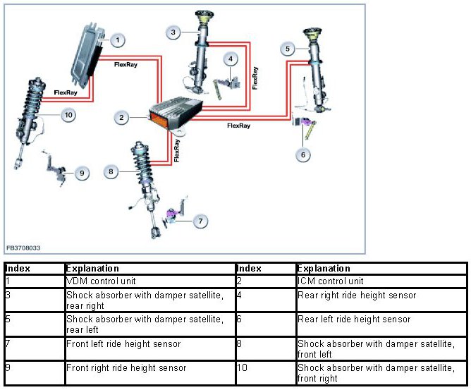 The height-level sensors are electrically connected to the Integrated Chassis Management (ICM). The implements the signal on the FlexRay.