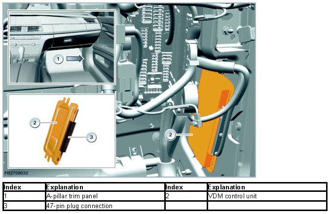 The VDM control unit is located in the passenger footwell at the A-pillar.