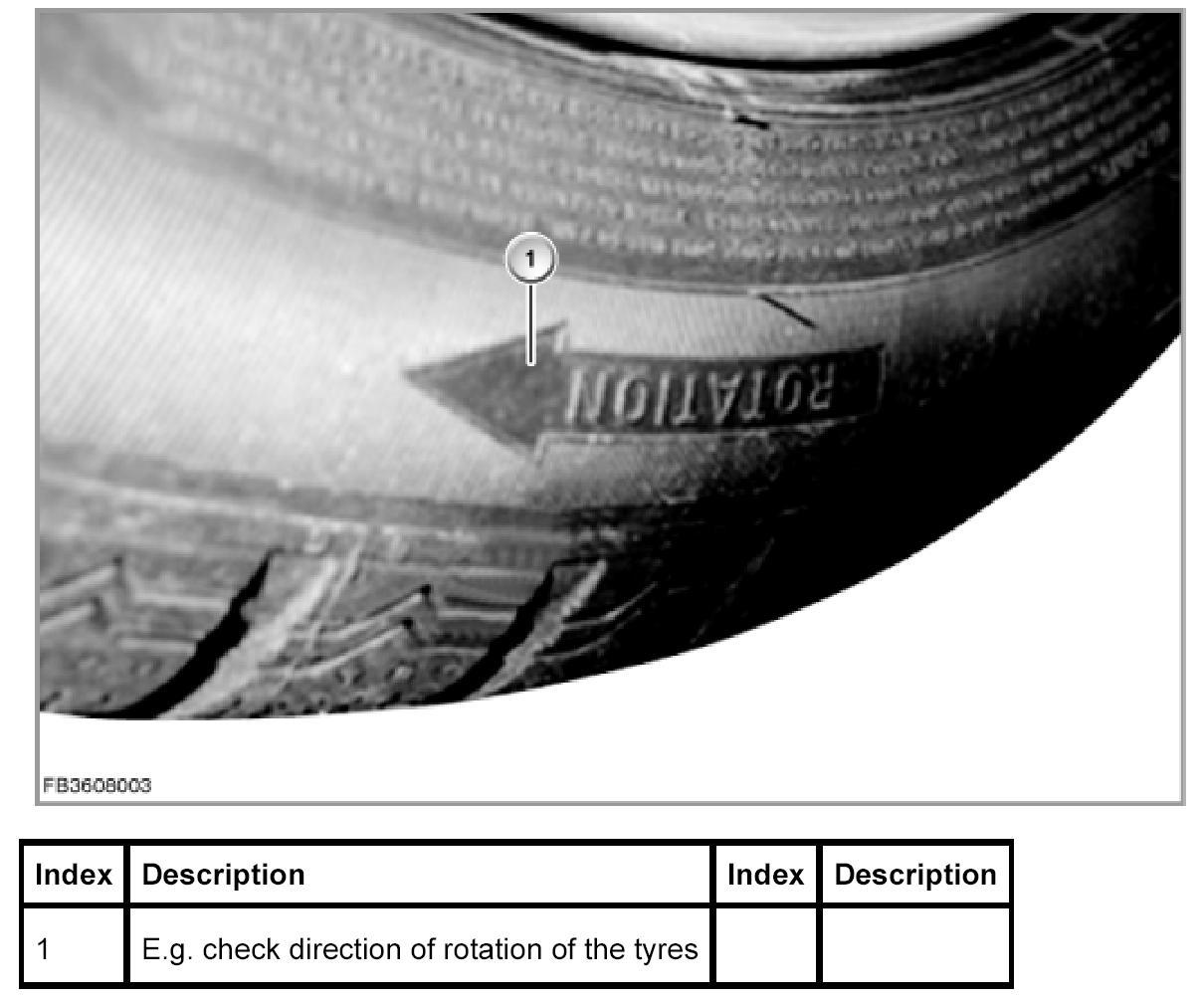 1 Direction of rotation of the tyres incorrect. Profile and tire inflation pressure not OK or damage to tyre