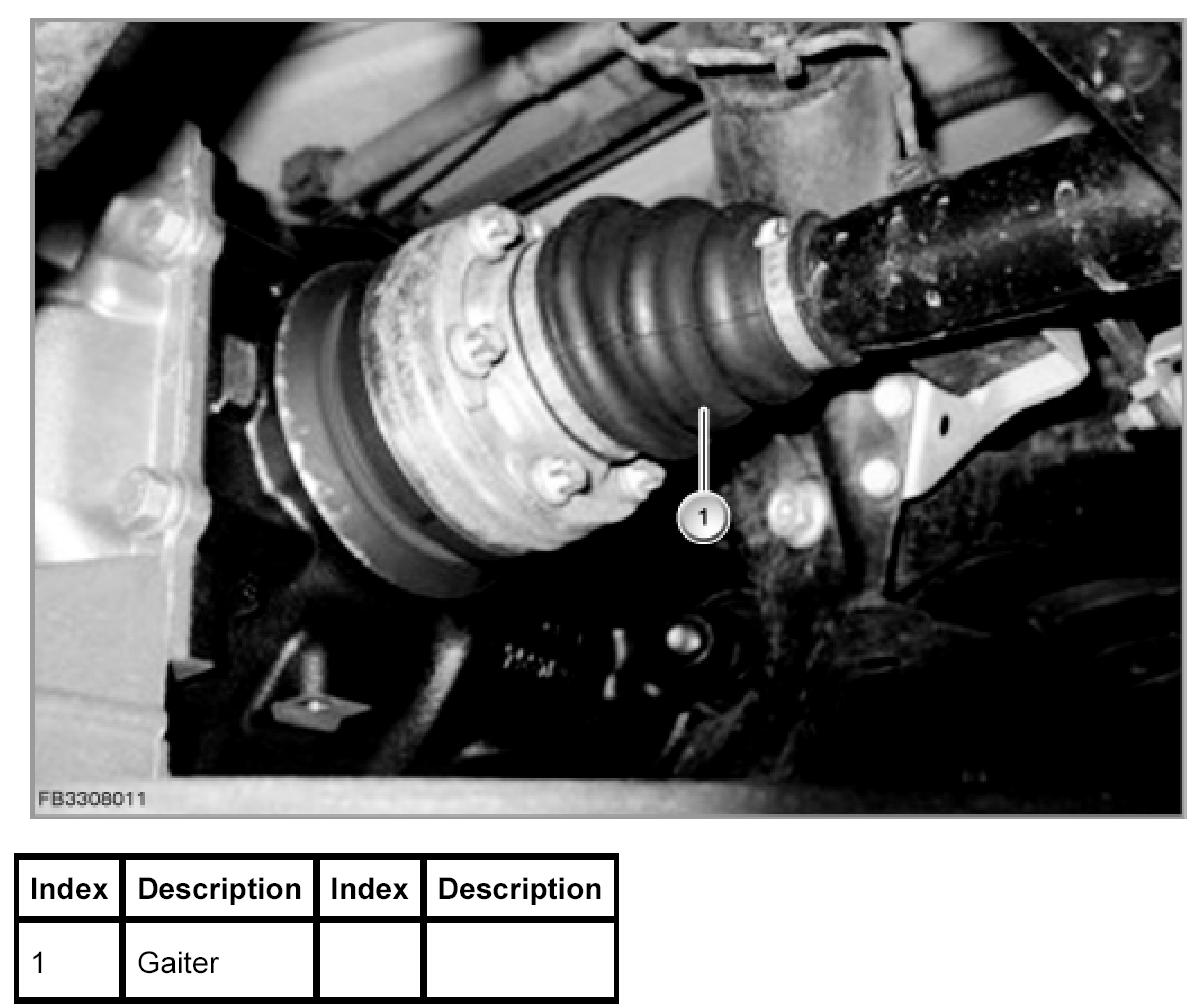 5 Gaiter on the driveshaft or output shaft loose or damaged