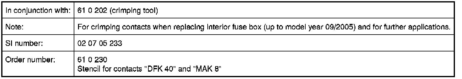 61 0 230 Stencil for contacts "DFK 40" and "MAK 8"