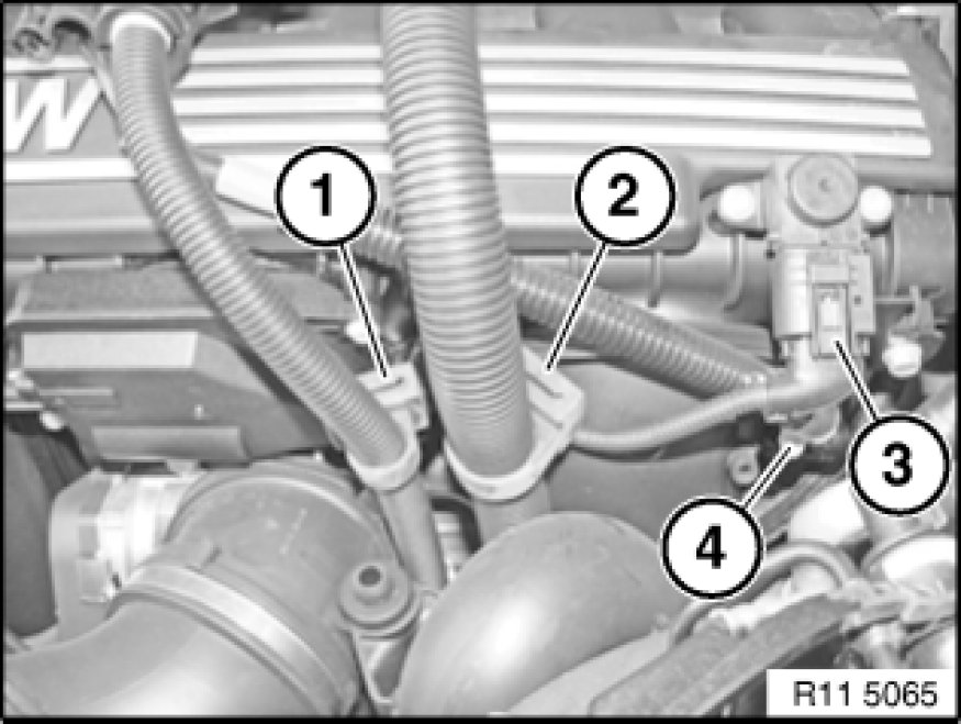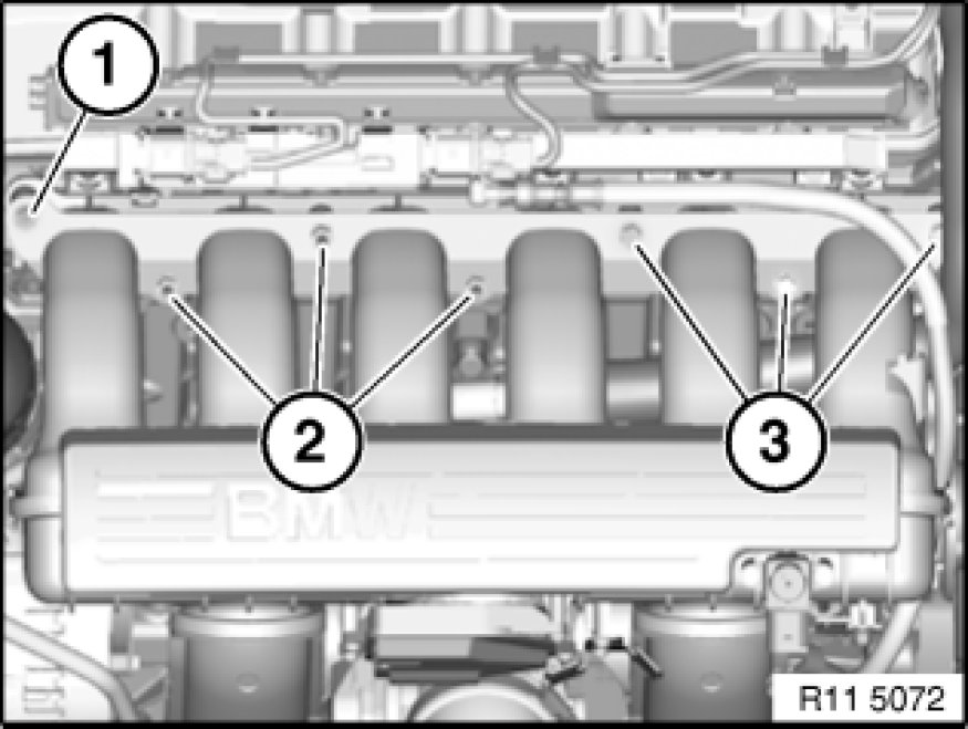 The lines (1 to 3) do not have to be detached in order to remove the air intake manifold!