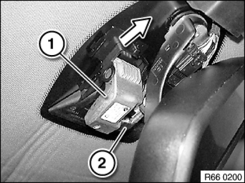 Expand two-part mirror base cover (1) by pressing from below and detach.