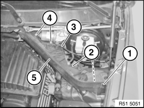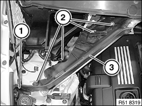 Remove gasket (1) for engine compartment lid.