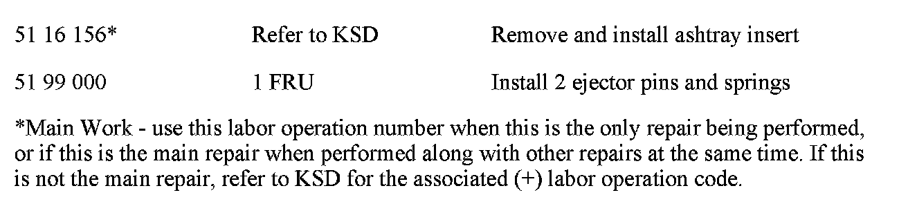 The ashtray located at the front of the center console does not release and pop up when the release button, to the right of the ashtray, is pressed.